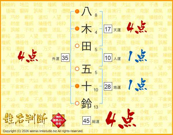 八木田五十鈴さんの外運は35画の4点!