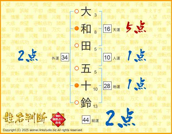 大(3画)和(8画)田(5画) 五(5画)十(10画)鈴(13画)