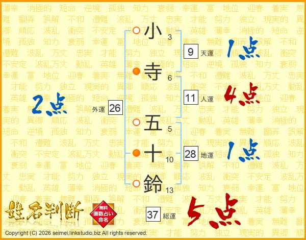 小寺五十鈴さんの総運は37画の5点!
