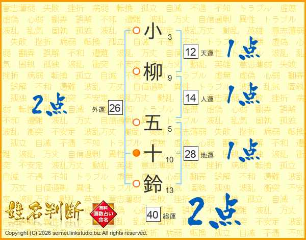 小柳五十鈴さんの総運は40画の2点!