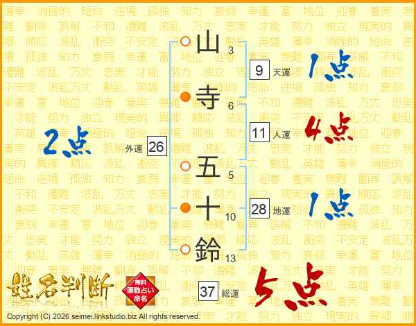 山寺五十鈴さんの総運は37画の5点!