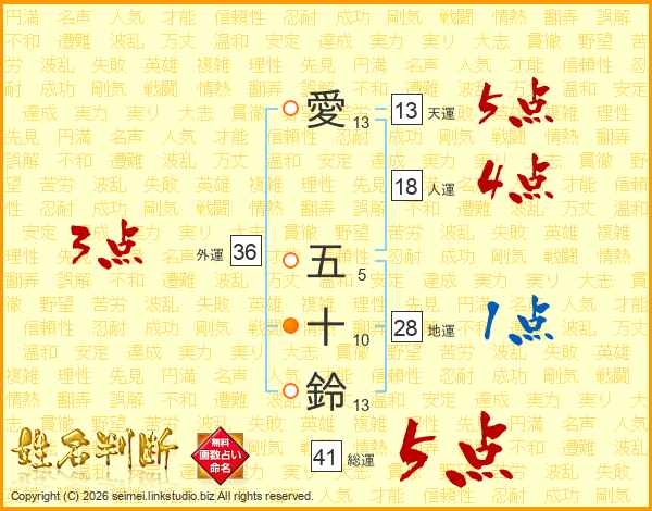 愛五十鈴さんの天運は13画の5点!