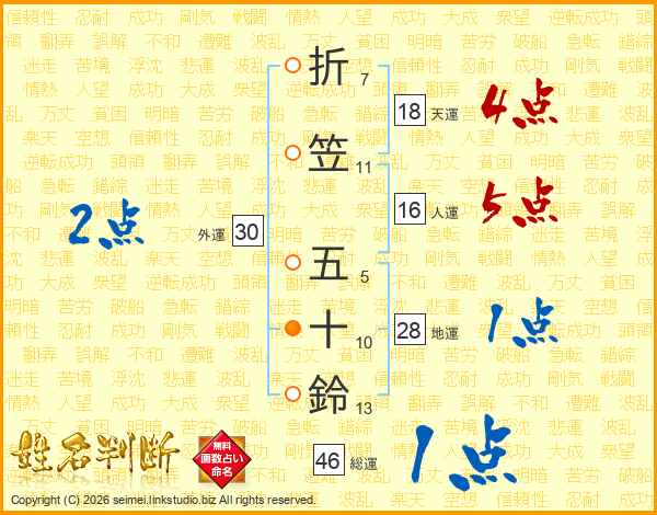 折笠五十鈴さんの総運は46画の1点!