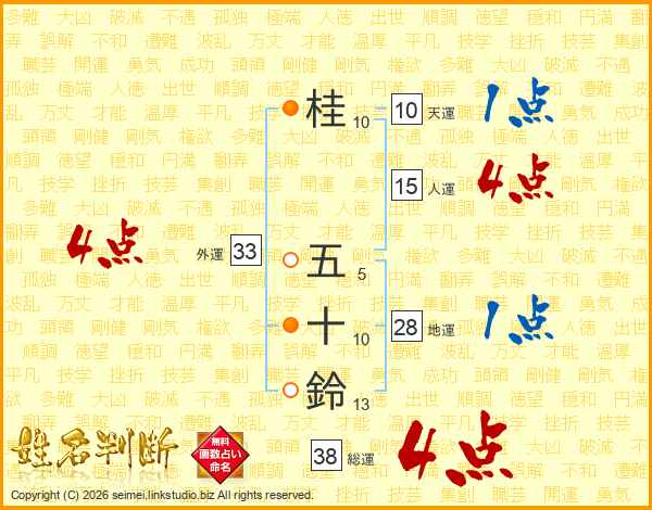 桂五十鈴さんの外運は33画の4点!