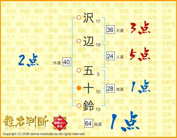 沢辺五十鈴さんの総運は64画の1点!