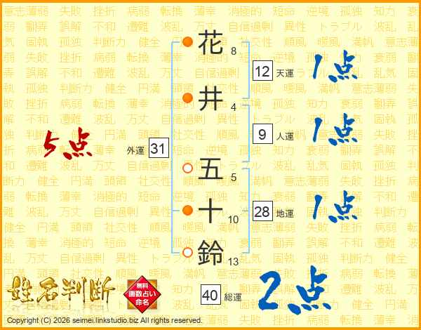 花井五十鈴さんの総運は40画の2点!
