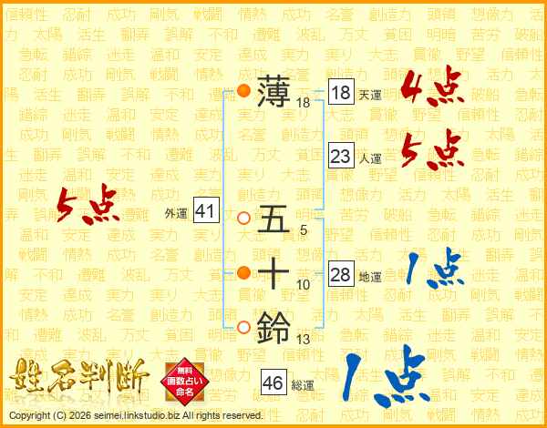 薄五十鈴さんの総運は46画の1点!