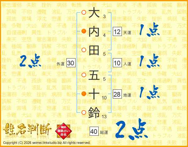 大内田五十鈴さんの総運は40画の2点!