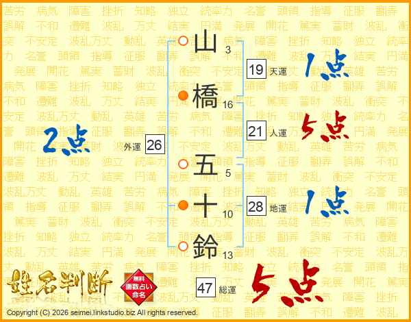 山橋五十鈴さんの総運は47画の5点!