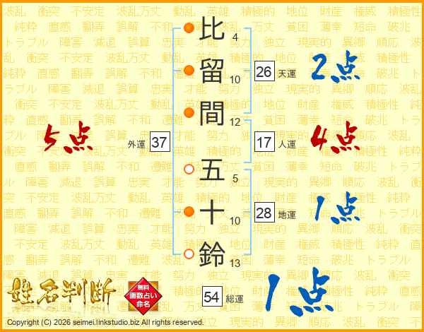 比留間五十鈴さんの天運は26画の2点!