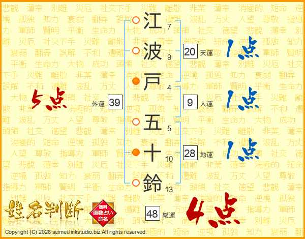 江波戸五十鈴さんの外運は39画の5点!