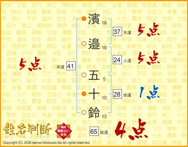 濱邉五十鈴さんの総運は65画の4点!