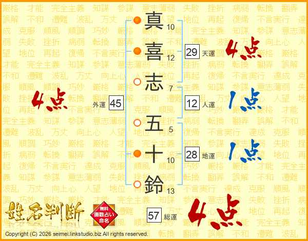 真喜志五十鈴さんの総運は57画の4点!