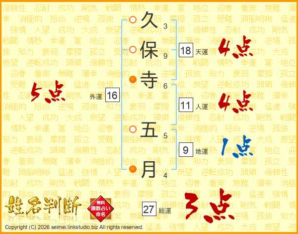 久(3画)保(9画)寺(6画) 五(5画)月(4画)
