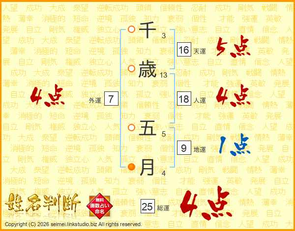 千歳五月さんの総運は25画の4点!