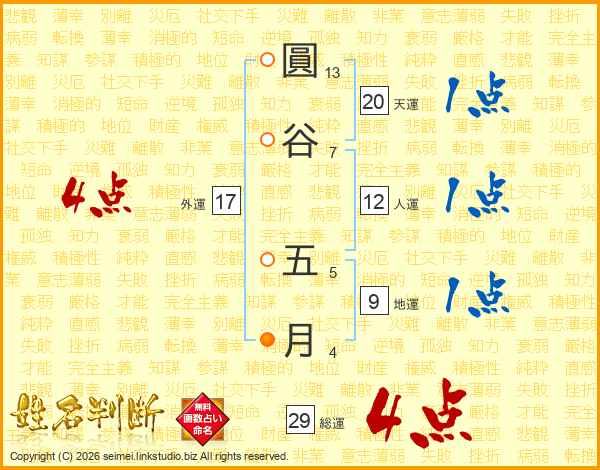 圓谷五月さんの総運は29画の4点!