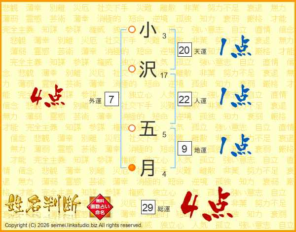 小沢五月さんの総運は29画の4点!