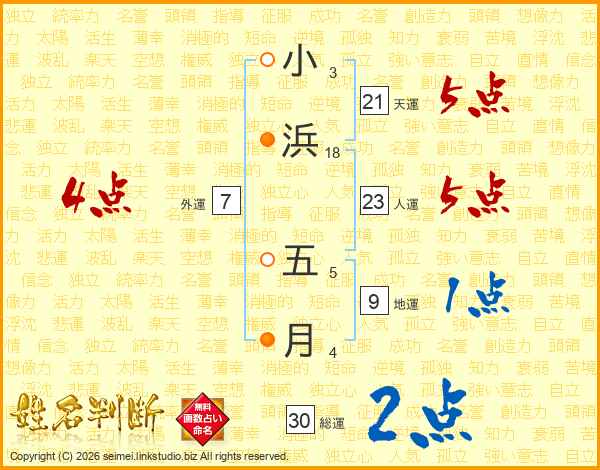 小浜五月さんの天運は21画の5点!