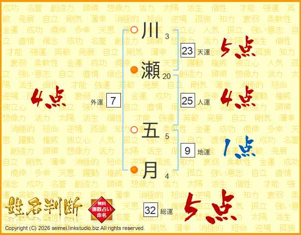 川瀬五月さんの総運は32画の5点!