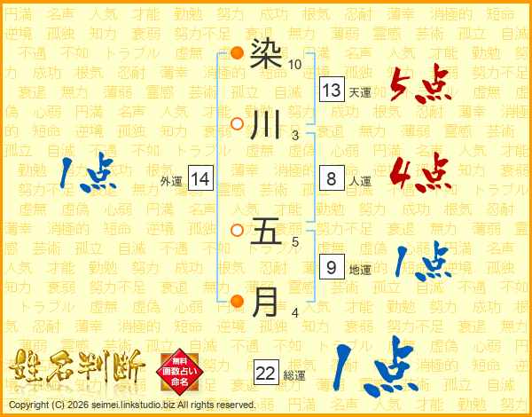染川五月さんの総運は22画の1点!