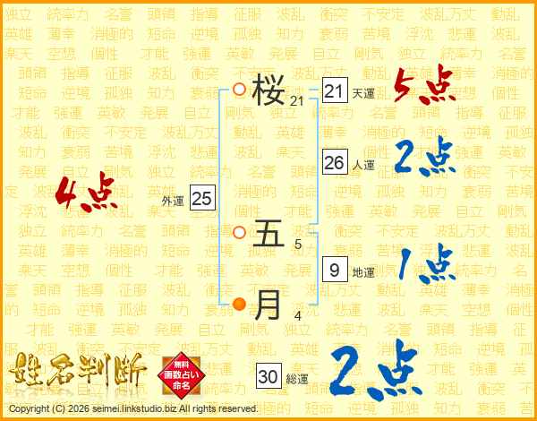 桜五月さんの総運は30画の2点!