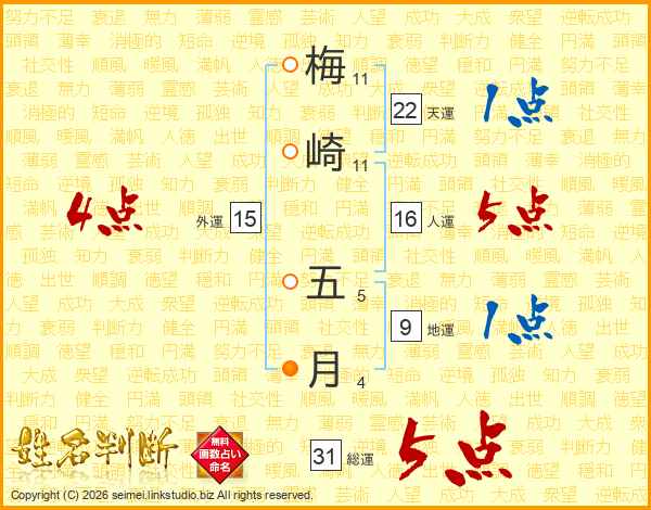 梅崎五月さんの総運は31画の5点!