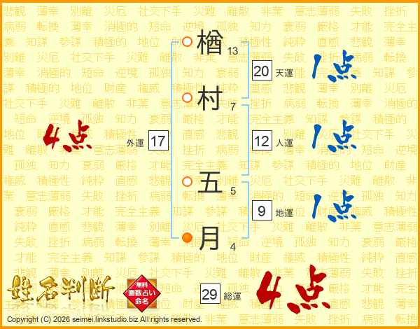楢村五月さんの総運は29画の4点!