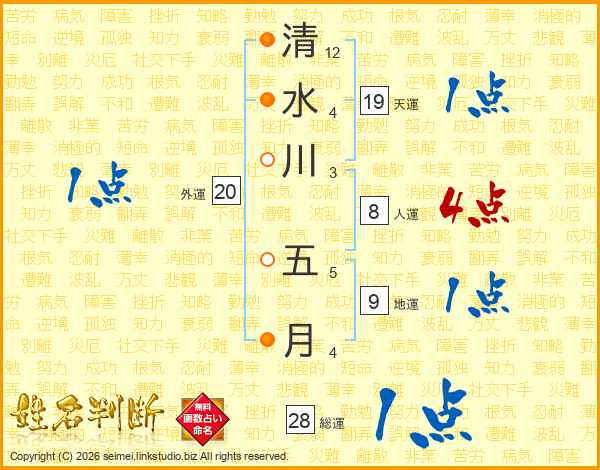 清水川五月さんの天運は19画の1点!