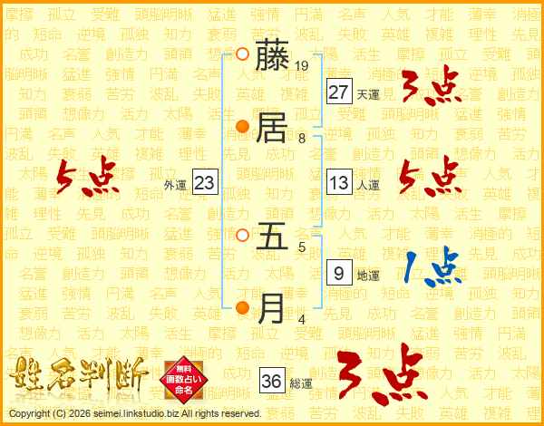藤居五月さんの総運は36画の3点!