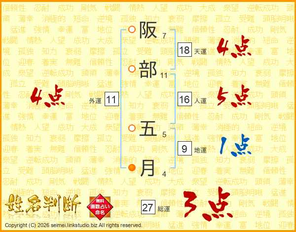 阪部五月さんの総運は27画の3点!