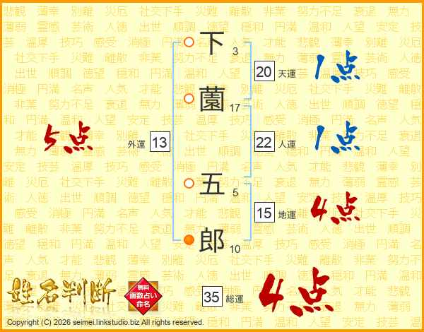下薗五郎さんの総運は35画の4点!