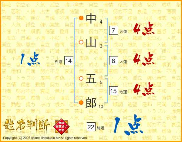 中山五郎さんの天運は7画の4点!