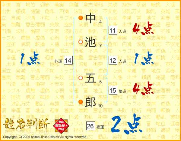 中池五郎さんの総運は26画の2点!