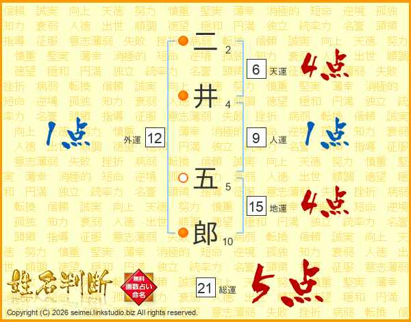 二井五郎さんの総運は21画の5点!