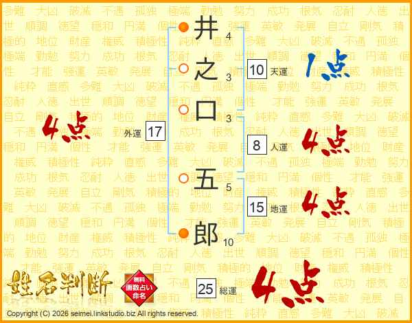 井之口五郎さんの総運は25画の4点!
