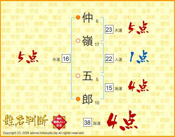 仲嶺五郎さんの総運は38画の4点!
