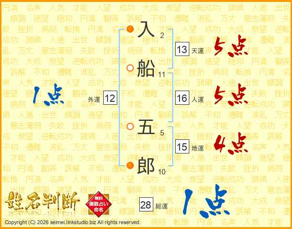 入船五郎さんの総運は28画の1点!