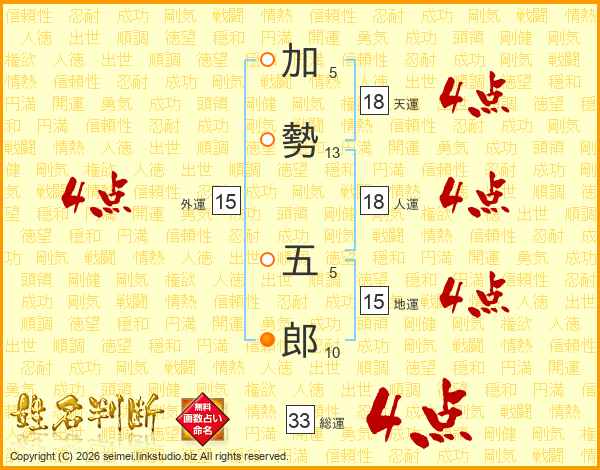 加勢五郎さんの総運は33画の4点!