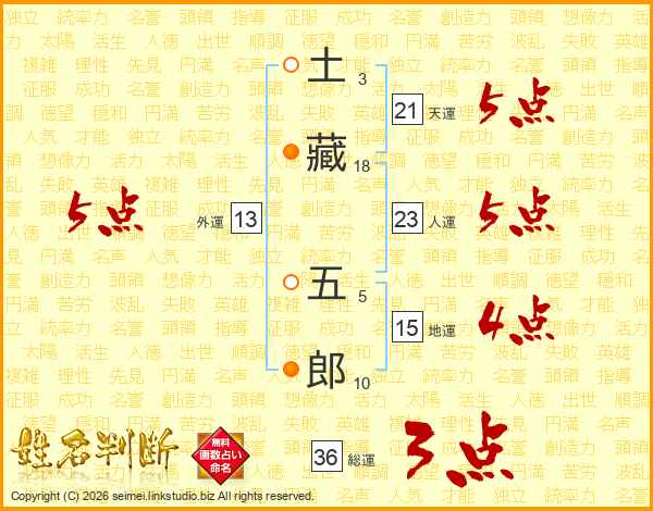 土藏五郎さんの総運は36画の3点!