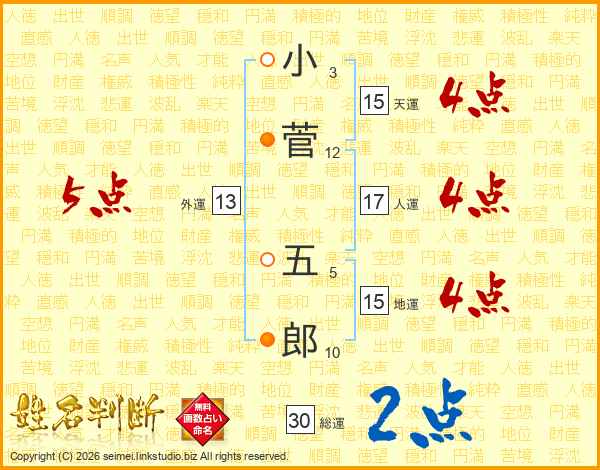 小菅五郎さんの総運は30画の2点!
