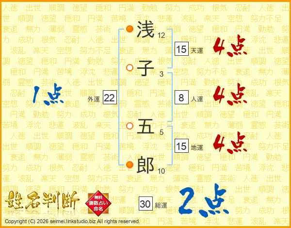 浅子五郎さんの総運は30画の2点!