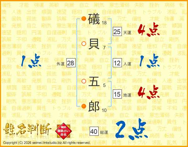 礒貝五郎さんの天運は25画の4点!