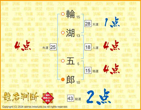 輪湖五郎さんの総運は43画の2点!