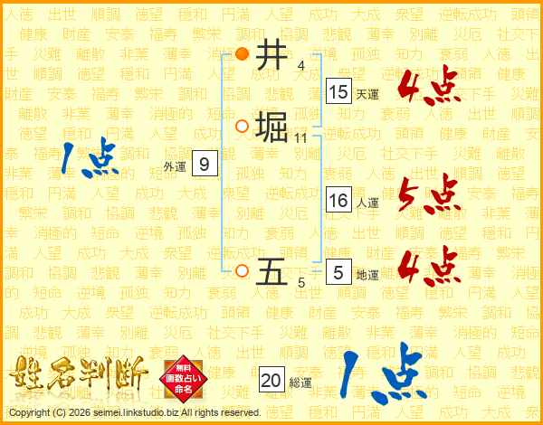 井堀五さんの天運は15画の4点!