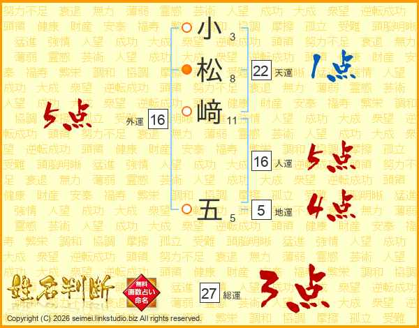 小松﨑五さんの総運は27画の3点!