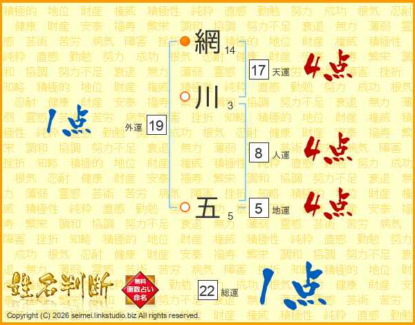 網川五さんの天運は17画の4点!