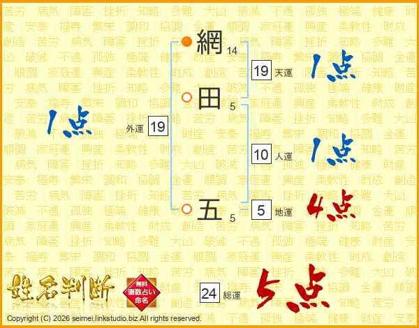 網田五さんの総運は24画の5点!