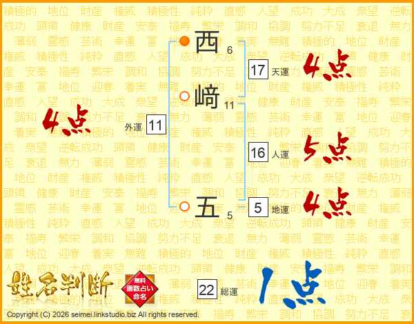 西﨑五さんの地運は5画の4点!