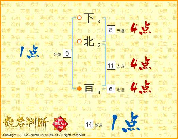 下北亘さんの総運は14画の1点!