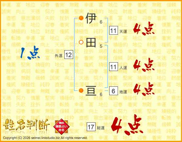 伊田亘さんの総運は17画の4点!